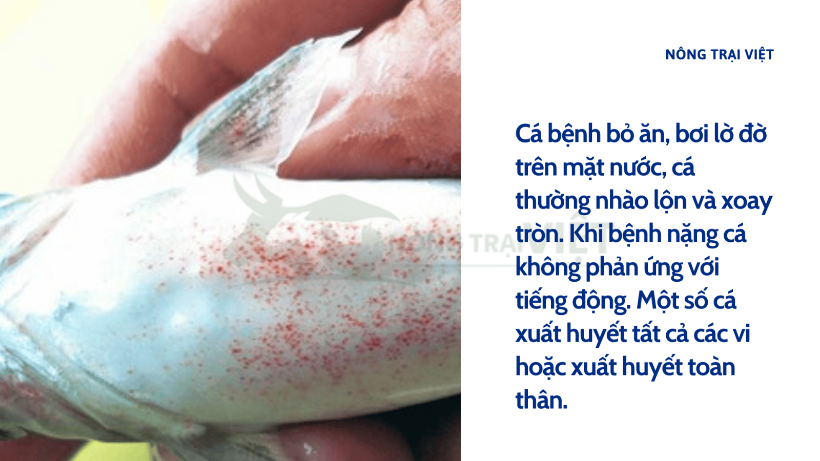 - Có thể xuất huyết vi hoặc toàn thân; nhấc khỏi nước máu chảy từ da, mang.