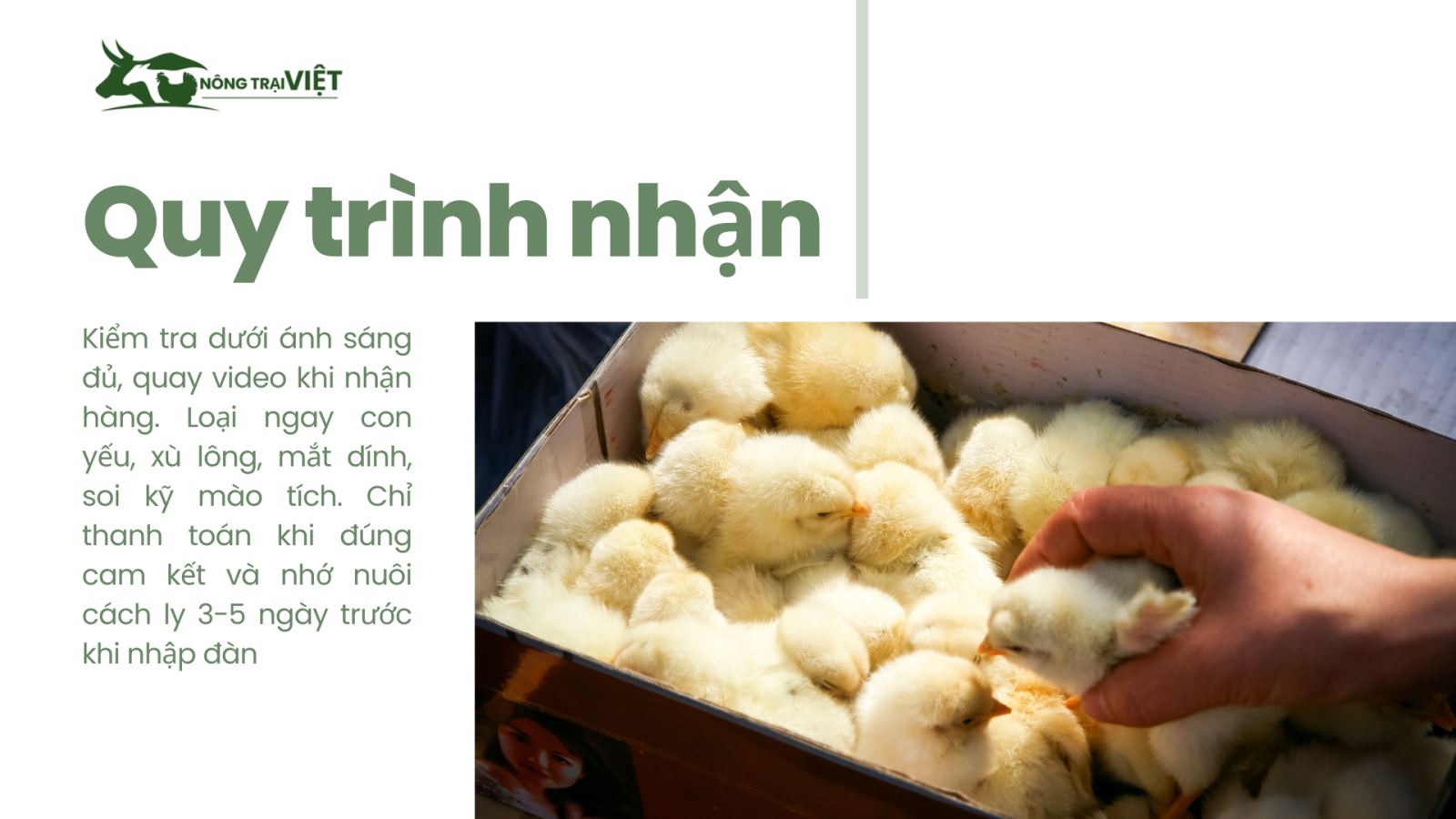 - Kiểm tra ngày nở – sổ tiêm – địa chỉ trại – số điện thoại.