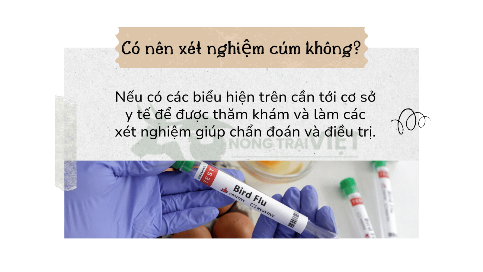 Test nhanh Influenza A/B (dịch mũi/họng/tỵ hầu) giúp phát hiện kháng nguyên; một số sinh phẩm phân biệt A(H1N1), A và B. Nếu sốt cao, gai rét, viêm long đường hô hấp, có yếu tố tiếp xúc (gia cầm bệnh/vùng dịch/đi qua vùng lưu hành), cần đến cơ sở y tế để được thăm khám và làm xét nghiệm chẩn đoán.