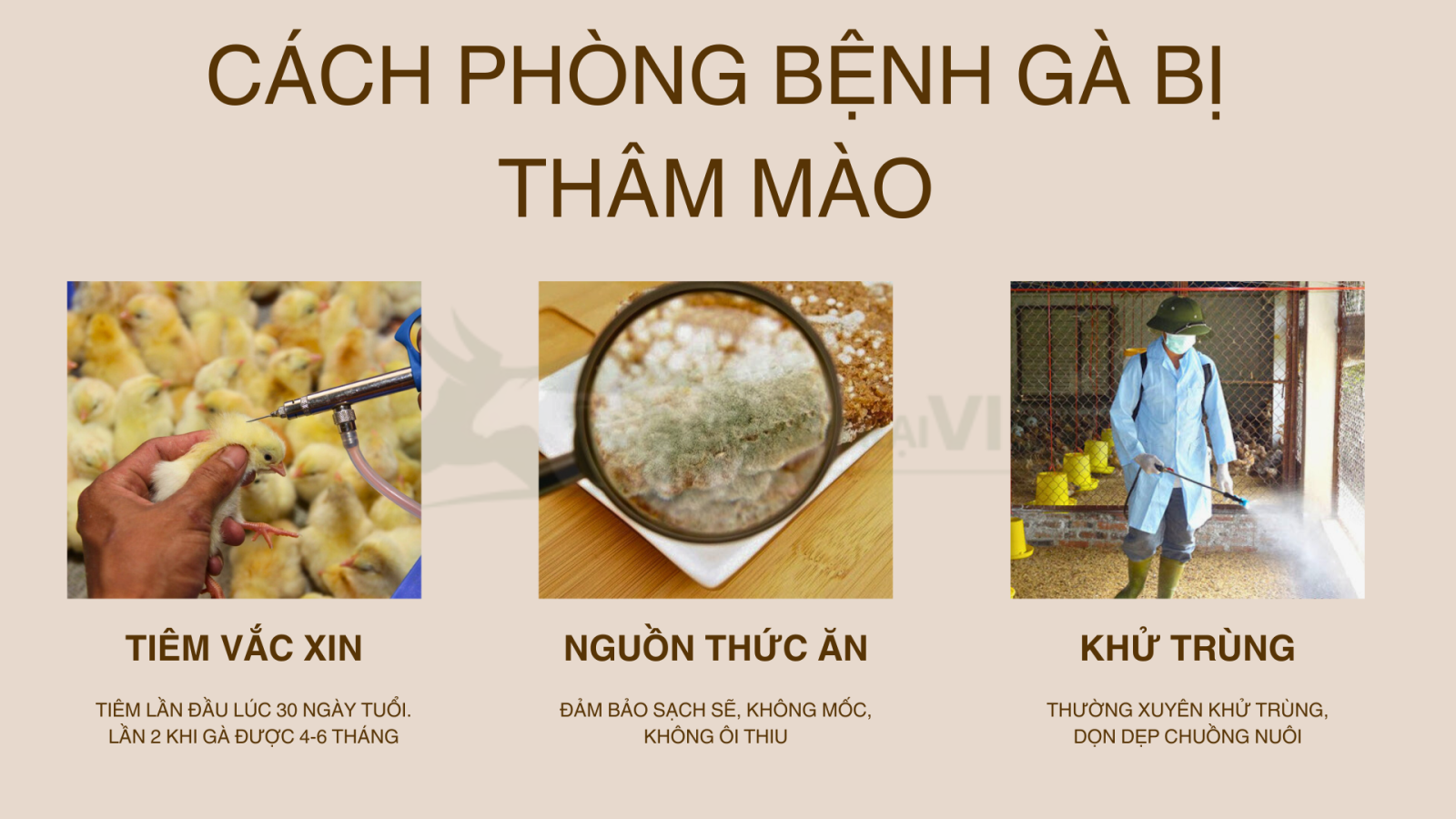 - Xử lý: tham vấn thú y để chọn phác đồ hợp lệ; thay đệm lót khô; tẩy nội ký sinh định kỳ; hạn chế nuôi chung với gà tây/đàn nghi mang mầm.