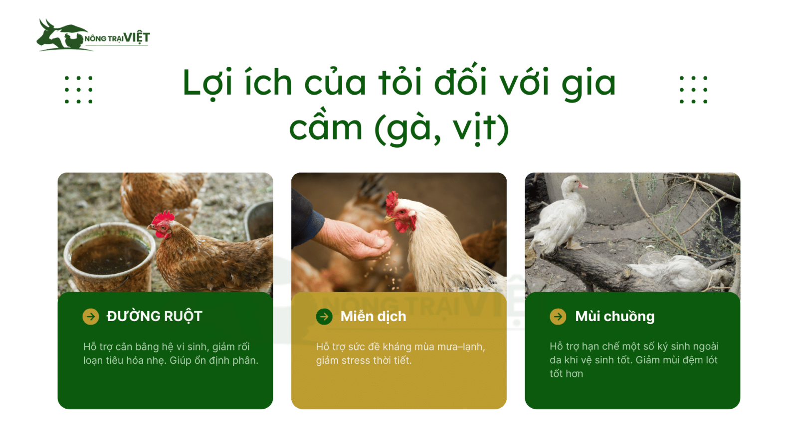 - Giúp đàn phục hồi tốt hơn sau các đợt thay đổi khẩu phần.